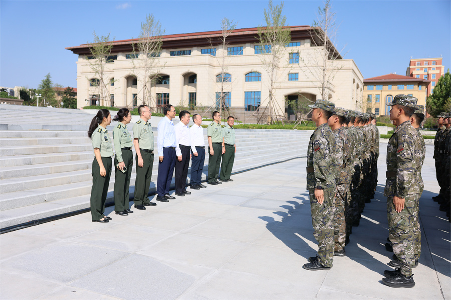 9月19日下午,校党委书记沈兴全,校长孙宏斌,校党委常委、副校长任喜莹一行,深入2025级本科新生军训现场,在明向校区训练场亲切看望慰问正在参训的新生与全体承训教官,学生工作部负责人陪同慰问。