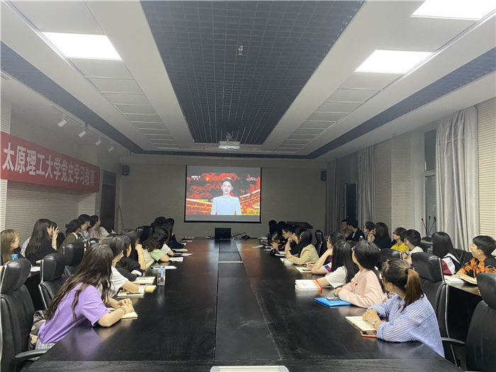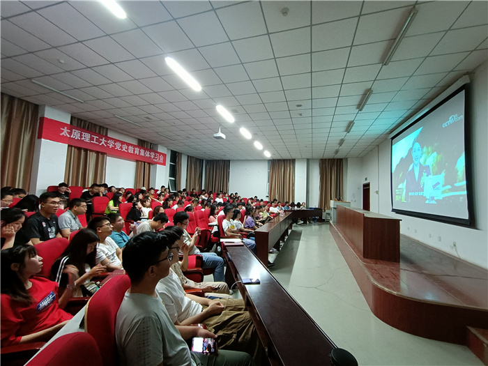 百年恰风华,千人同在线。现场同学们神情专注,反响热烈,不时热泪盈眶。从开国大典的第一面五星红旗升起,到抗美援朝战争人民志愿军打出了山河无恙;从新中国成立初期的扫除文盲活动,到如今教育走上了现代化的发展道路;从李大钊到焦裕禄,从左权将军到雷锋战士,在真实动人的故事中,在感人肺腑的情节片段里,同学们感受着中国共产党带领中国人民一路走来的苦难与辉煌,在党的非凡历程中汲取着前行的力量。在视频播出朗诵《沁园春·雪》时,全体同学也不约而同地跟着朗诵,会场不时爆发出热烈的掌声。
