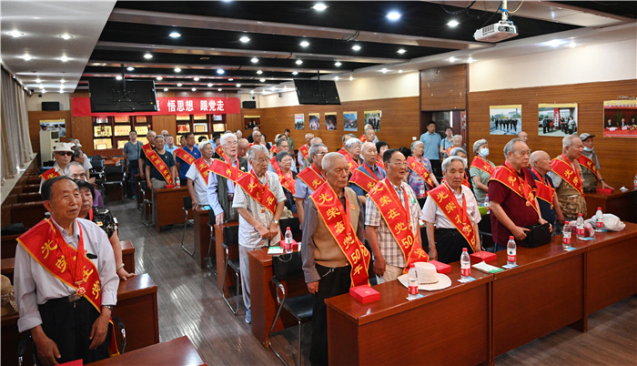 面向党旗,李晋平带领现场全体共产党员重温入党誓词。老党员们银发生辉、精神矍铄,声音铿锵有力,深刻诠释了“入党一生一次,在党一生一世”的终生诺言。