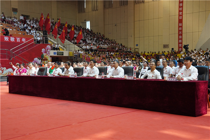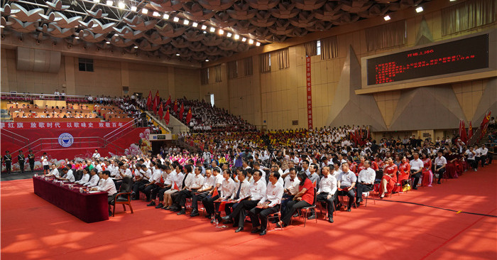 漫漫征途忆峥嵘岁月,声声嘹亮颂百年初心。6月25日,我校“颂百年芳华铸千秋伟业”庆祝中国共产党建党100周年师生大合唱在迎西校区体育馆隆重举行,全校师生欢聚一堂,唱红歌、忆党情、颂党恩,礼赞中国共产党成立100周年的丰功伟业。校党委书记郑强,中国工程院院士、校长黄庆学,校党委副书记刘润祥,校党委常委、纪委书记翟健,副校长吕永康、张献明、冯国瑞出席活动,学校各职能部门、各学院党政负责人,离退休老同志、师生代表等参加活动。