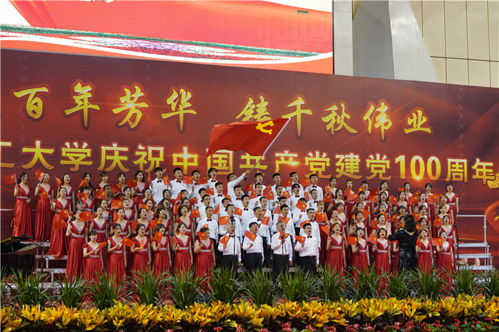 飞扬的歌声,吟唱难忘的岁月;熟悉的旋律,演绎时代的乐章。各个合唱队服装整齐、身姿挺拔、热情高涨,演唱形式别出心裁,在合唱的基础上配以朗诵等表演,让现场高潮迭起,使在场师生们真切感受到共产党一百年光辉灿烂的奋斗历程。大合唱分为《党旗飘扬》《峥嵘岁月》《祖国万岁》《复兴之路》四个篇章。