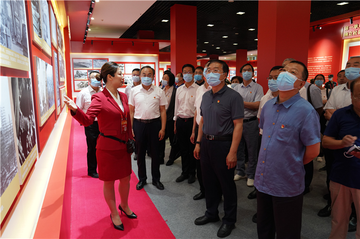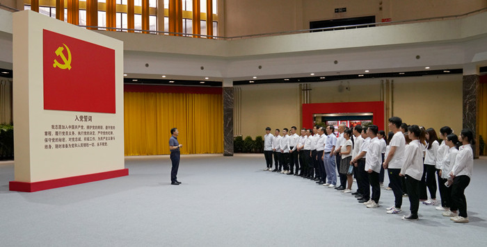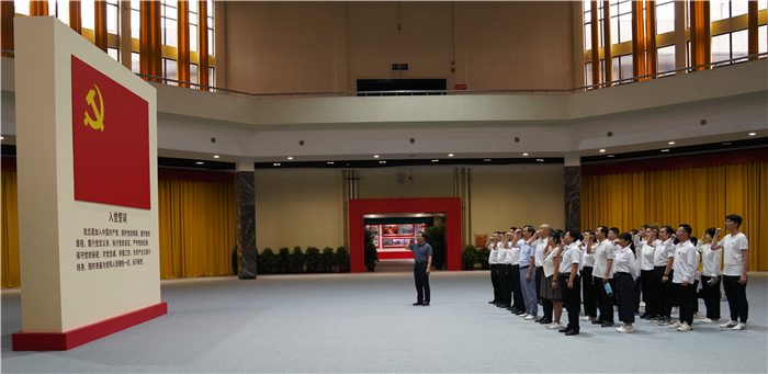 参观结束后,李晋平带领党员同志面向鲜红的党旗,举起右拳,重温入党誓词,庄严宣示牢记初心使命、持续接力奋斗。