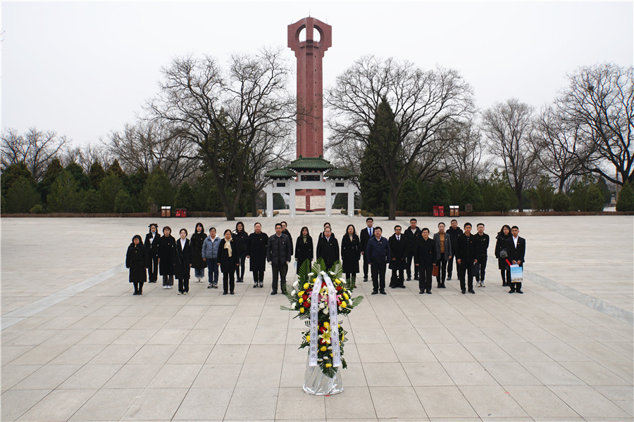 在死难烈士纪念碑前,郭春耀主持了敬献花篮仪式,院领导带领大家绕行瞻仰烈士纪念碑,重温中国共产党波澜壮阔的奋斗历程。在徐向前将军铜像前,吉育峰带领全体党员,面向党旗,紧握右拳,庄严宣誓:“我志愿加入中国共产党,拥护党的纲领,遵守党的章程……为共产主义奋斗终身,随时准备为党和人民牺牲一切,永不叛党。”